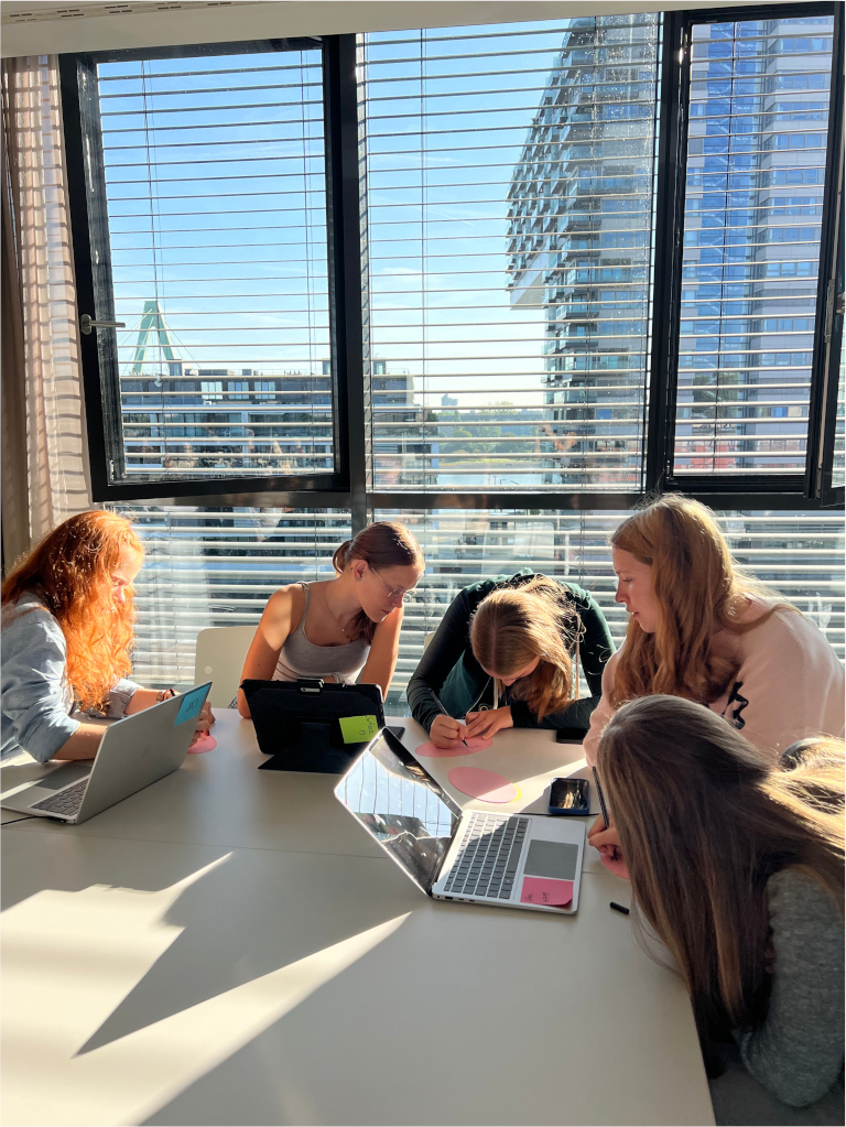 Nach der Präsentation der Ergebnisse wurde uns durch einen Microsoft-Mitarbeiter ein Einblick in den Berufsalltag bei Microsoft und die Arbeit mit KI im beruflichen Kontext gegeben. Im Anschluss folgte eine kleine Führung durch das Bürogebäude, inklusive Zugang zur Dachterrasse mit einem beeindruckenden Blick auf Köln und die Kranhäuser – zweifellos ein weiterer Höhepunkt des Tages.